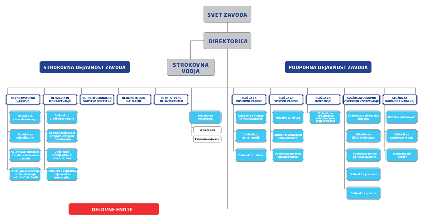 Dejavnost zavoda se deli na strokovno dejavnost zavoda in podporno dejavnost zavoda.